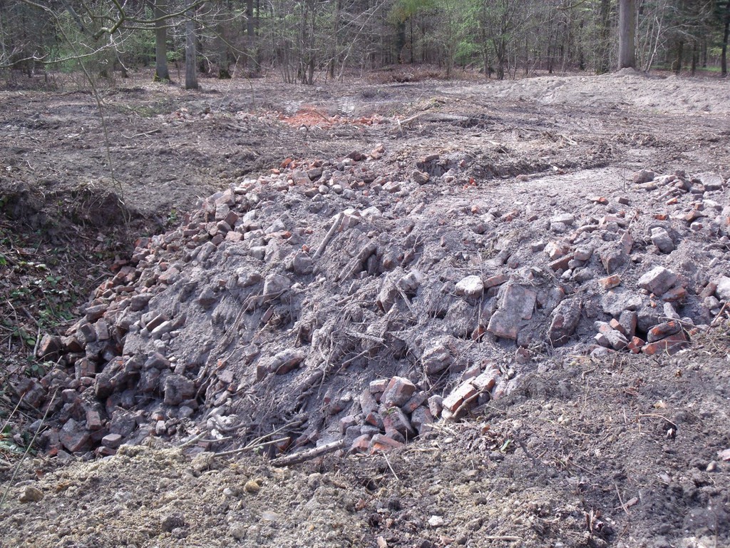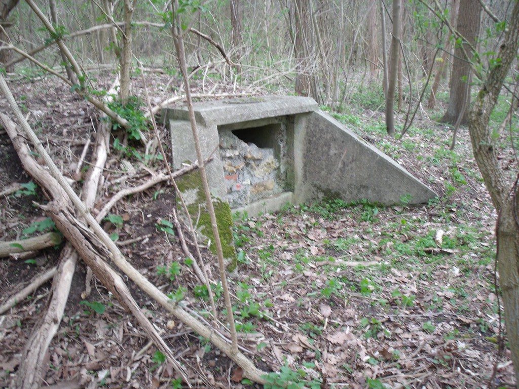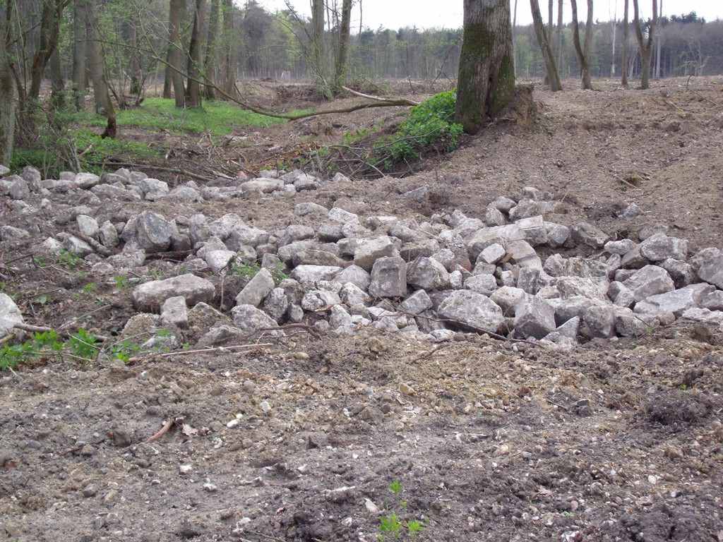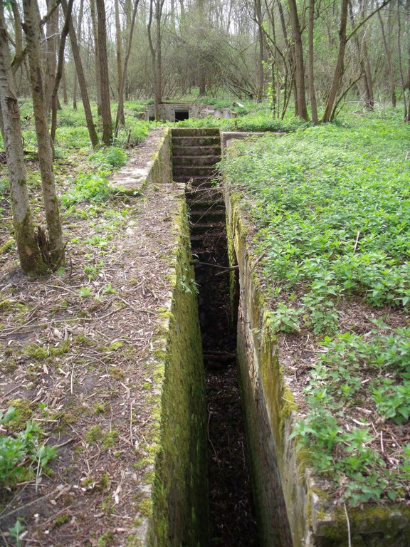 En nous enfonçant plus avant dans le bois, nous avons retrouvé des rails tordus par les bombes alliées et sortant de terre près de vestiges bétonnés de casemates de stockage de munitions dont les entrées et sorties, semi-colmatées par les effondrements du terrain, ne permettent pas l’accès immédiat. Pour ce faire il faudrait creuser longuement pour déblayer les passages avec tous les risques que cela comporte.